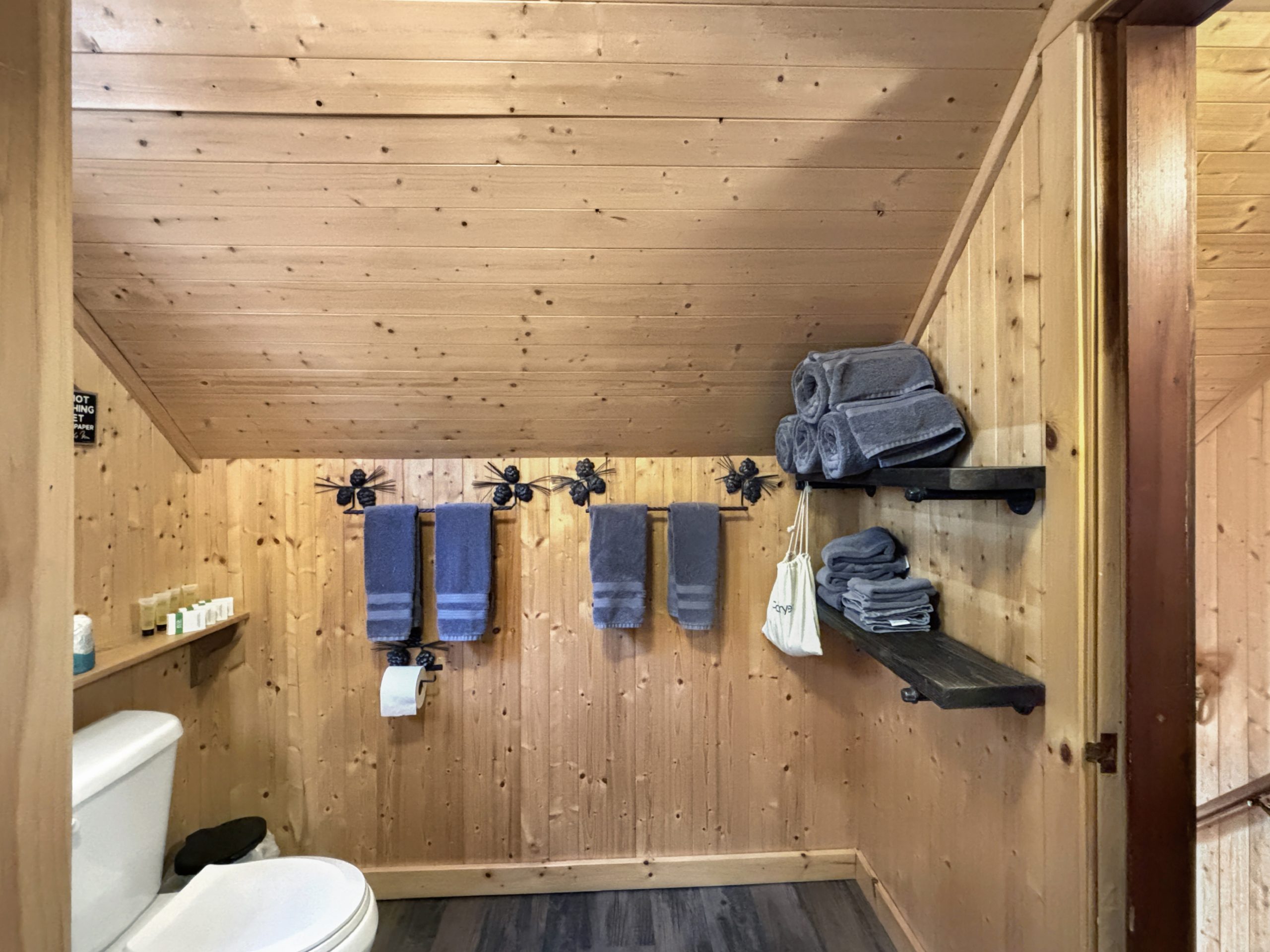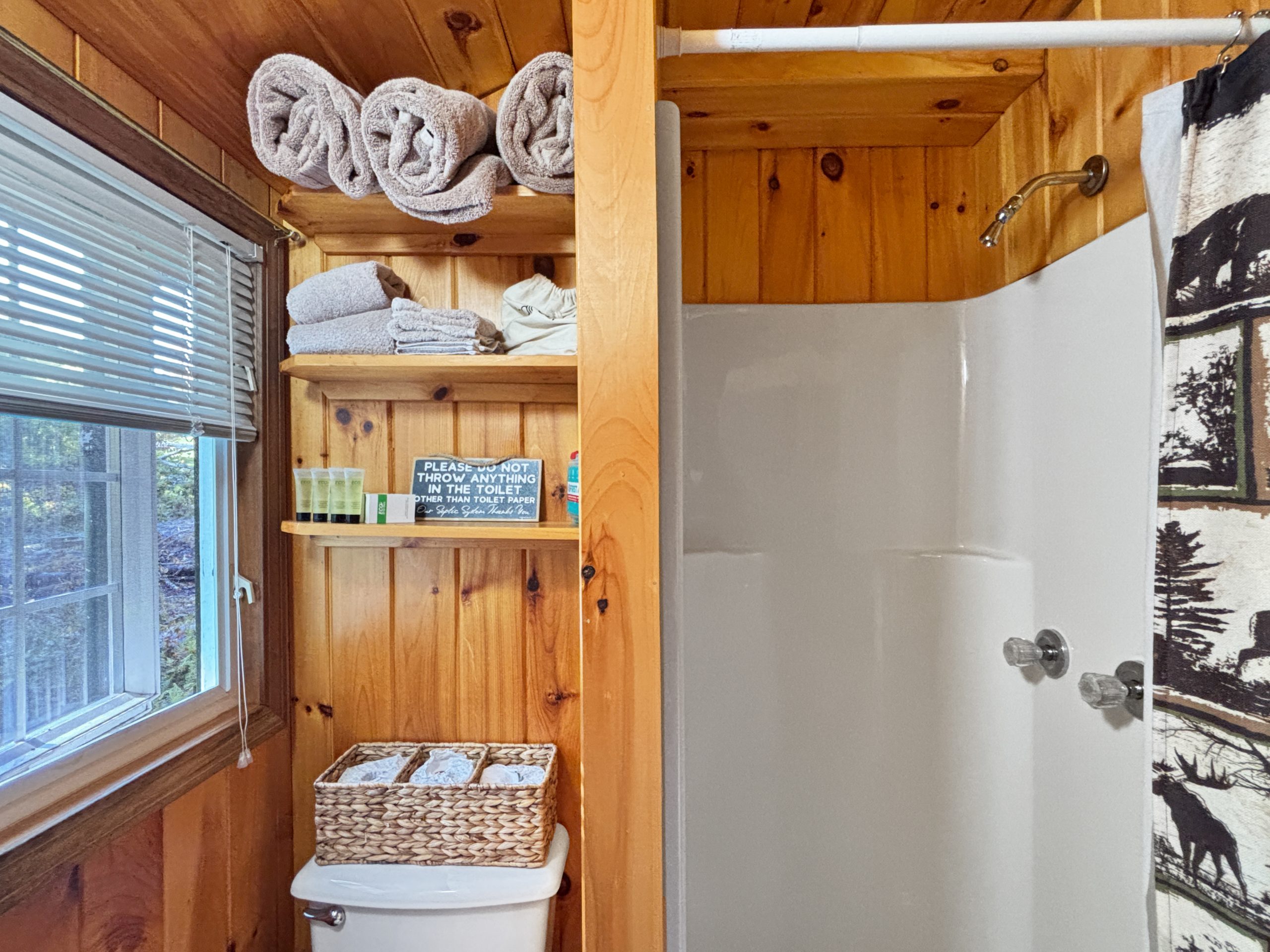 - Sundries: Fresh linens and bedding will be provided for your stay and will be cleaned at the end of your stay. If your stay extends beyond 1 week, we can coordinate a linen change at the end of each week. Two rolls of toilet paper, one roll of paper towels, one travel size soap will be included. If you should require more than what is provided, it is your responsibility to provide for yourself. Please plan and prepare for your stay accordingly. The store is 10 minutes from the cabins, as well as multiple supermarkets along your drive.