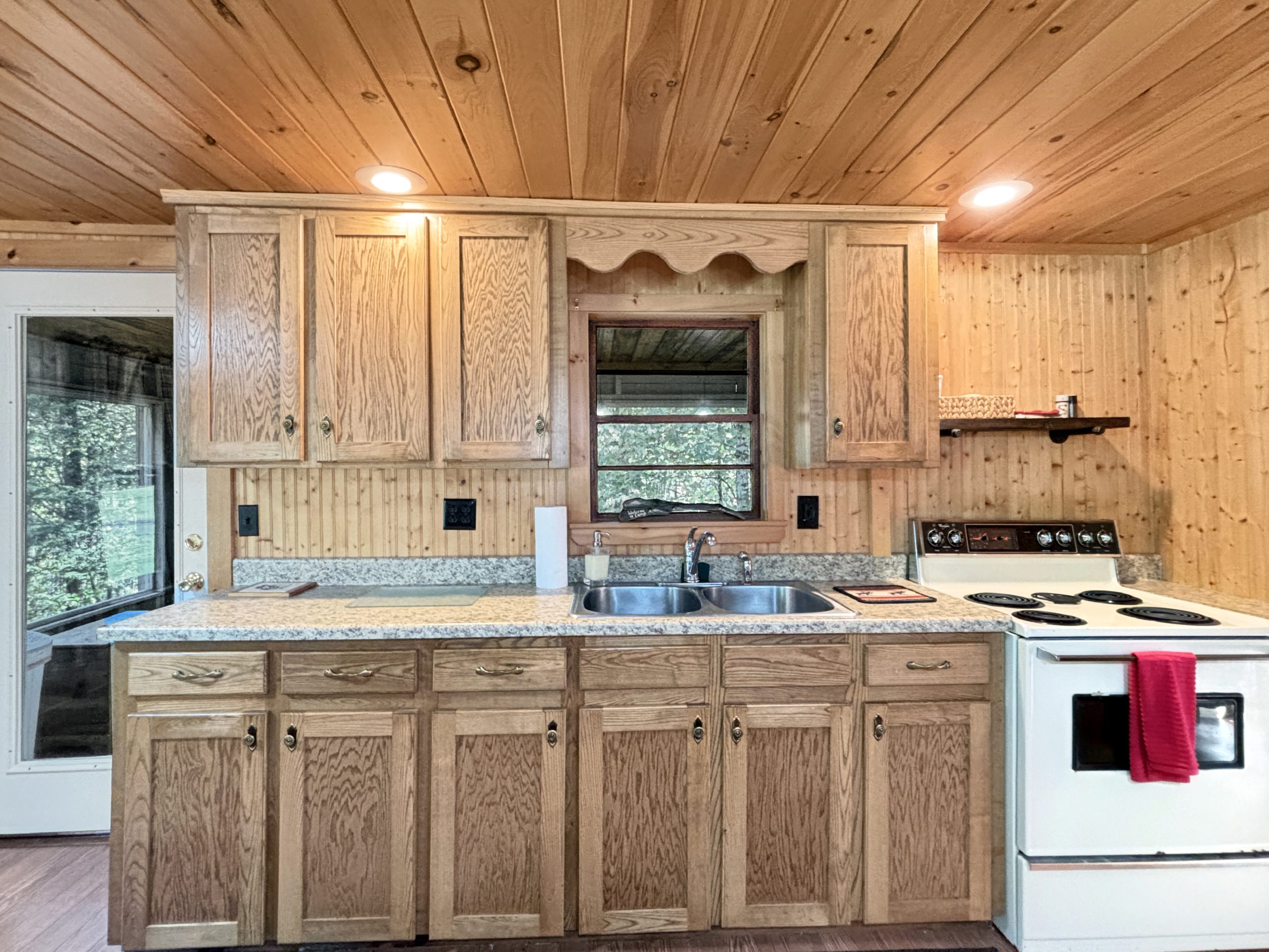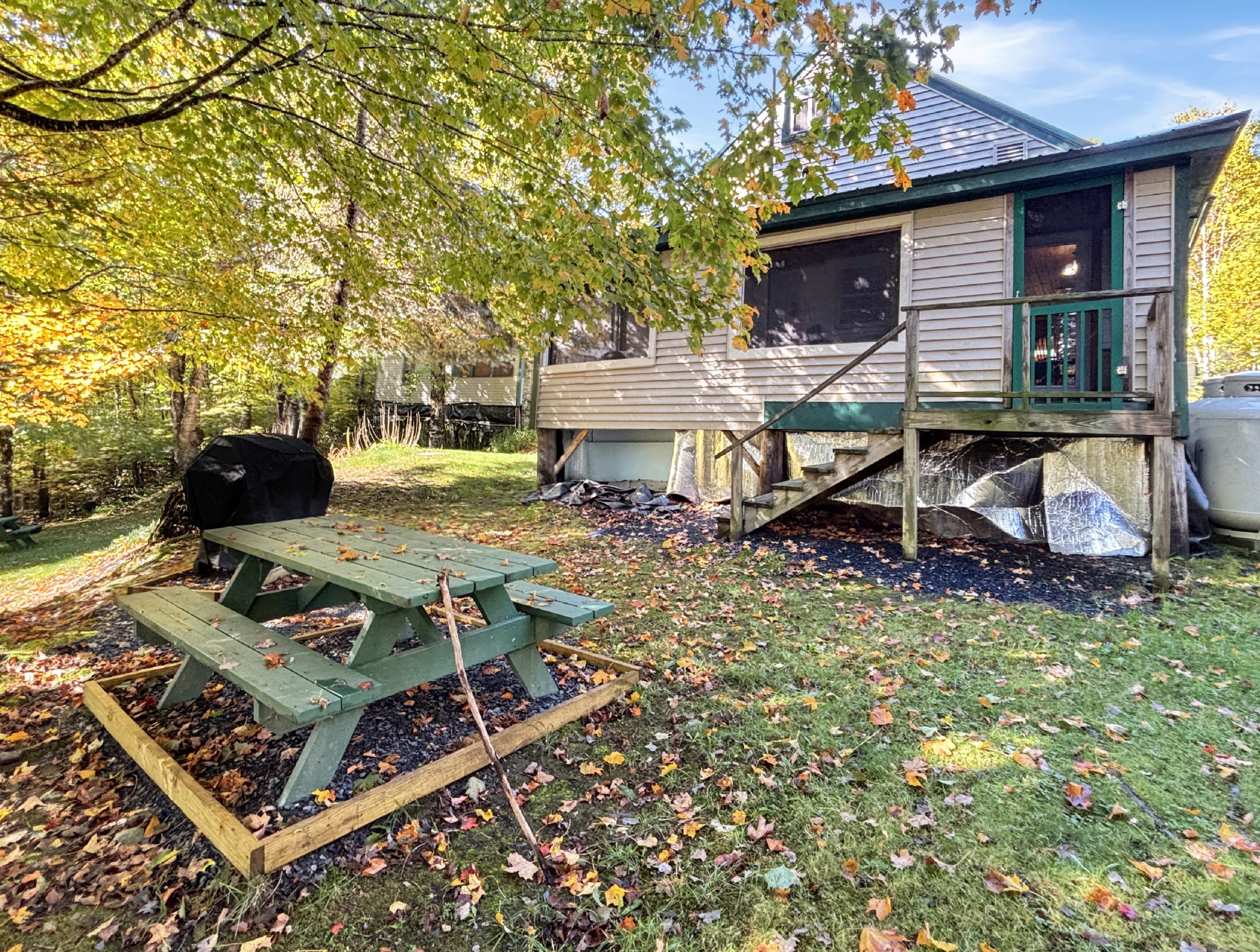 Lake view cabin, just steps to the lake and dock for use to swim or just enjoy the sights and sounds of the lake. Enjoy a bug free afternoon or evening in the screened in porch relaxing on the porch swing. WI-FI is supplied for streaming services (no local channels) and has a DVD player. We offer a large library of DVDs for our guests to borrow. The cabin has 2 bedrooms, one with a queen size bed and bedroom two has a queen-size bed and full-size bed (bunk style) and a twin bed. We supply all bedding for your comfort. The living room has a queen sleeper sofa for additional sleeping accommodations, and a gas fireplace. The kitchen is fully stocked with dinnerware, cookware, utensils, drip coffee maker (Keurig upon request), toaster, microwave. We supply dish soap, kitchen towels, and 1 roll of paper towels. The bathroom has a walk-in shower, and we supply 1 full set of plush towels, soap and shampoo/conditioner per guest, bath tissue, and blow dryer. The cabin has a large private back yard with a fire pit, gas grill, picnic table, and Adirondack chairs. Our guests enjoy the complimentary use of canoes, kayaks and paddleboards on Wilson Pond.